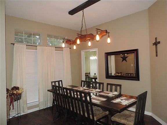 3 Bedroom 2 bath home in Meadow Ridge Estates in Venus ISD. Wood flooring in Living, dining, bedrooms and hallway. Vinyl flooring in kitchen and bath areas. Both baths have double sinks. Master with a garden tub and separate shower. Dual closets in Master bath. Kitchen with large island, gas stove and cooktop and is open to breakfast area. Gas fireplace in Living area. Bedrooms with nice sized walk in closets. Fenced backyard with storage building.