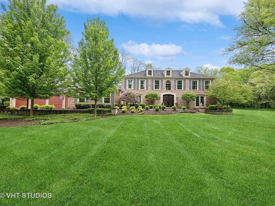 Welcome to your dream retreat in the heart of Barrington Hills! This exquisite Georgian home, set on 5 picturesque acres with in-ground pool, offers the perfect blend of luxury, comfort, and style. As you approach via the winding drive under a canopy of mature trees, you'll feel a sense of tranquility and privacy. Step inside to the open floor plan, ideal for entertaining and cozy family gatherings featuring custom moldings, beautiful hardwood floors and newer Marvin windows throughout! The formal living room, with its pocket doors leading into the library and French doors opening to the patio, exudes elegance, while the formal dining room is perfect for hosting memorable dinners. The heart of the home is found in the sitting room with beamed ceilings, a cozy fireplace and charming brick archway, opening to the kitchen, library and sunroom to create an incredible gathering space. The stunning kitchen is an entertainer's delight with custom cherry cabinetry, granite counters, high-end appliances and a breakfast area with sliders leading to the outdoor pool. The sunroom, with its walls of windows and beamed ceilings, offers postcard perfect views and an abundance of natural light. Just steps up from the sitting room is the library, which features built-in bookcases and another fireplace, creating a perfect space for a cozy read. The huge family room offers additional entertaining options with an inviting fireplace and plenty of space for family and friends. The main level also includes a convenient laundry room, a full bath with easy access from the pool area, and a powder room for guests. Upstairs, the primary suite is a true retreat with spa-like bath, walk-in closet, and a private balcony overlooking the pool and lush rear yard. Three additional spacious bedrooms and a hall bath with double sinks complete the second floor. The finished lower level is designed for fun and relaxation, with a spacious recreation room and a wine cellar with tasting area. Car enthusiasts will love the four-car garage with epoxy flooring, an EV car charger, and pull-down stairs for attic storage. Low maintenance faux slate roof! Outdoors, you'll find a private oasis with an in-ground pool, large patio, and a sprawling rear lawn perfect for entertaining, games, and family fun. This home truly offers the best of Barrington Hills living offering privacy plus easy access to town, train, shopping, restaurants and award-winning Barrington D220 schools! Come see for yourself and imagine the lifestyle that awaits you!