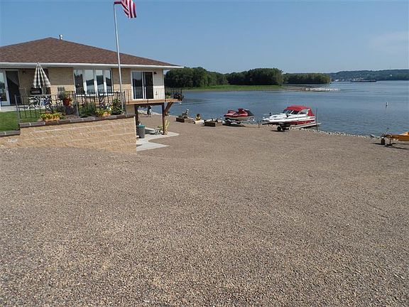 Beautiful home, incredible location! 137' of Mississippi River frontage with this immaculatly cared for brick ranch home. Many updates to this home that includes a large living room and amazing 4 season sun room. Two nice size bedrooms and walk-in closet. Both bathrooms have been recently remodeled. Formal dining roo plus a modern eat-in kitchen. Lots of cabints. Main floor laundry, one main floor garage and another garage into basement. Lower level has a walkout and could be finished off! Updates by current owners include new carpet, ceramic tile, laminate flooring, kitchen counter tops, built-in oven, microwave, dishwasher, retaining wall and concrete, landscaping, steps to dock, furnace, A/C, water heater, water softner, roof, bathrooms, and wrap around deck! All This and Boat dock ready! Exceptional value on a river property of this quality.