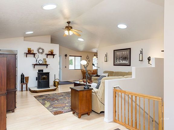 This single level home with a full finished basement is a rare find. Five bedrooms, 3 full baths, living room upstairs has a pellet stove and a kitchen dining combo. There is a welcoming entry way 2 additional bedrooms and a full bath upstairs along with the master suite. The kitchen has loads of cabinets and Silestone counter tops, a cooks dream with a Wolf gas stove and vent hood, newer refrigerator and walk in pantry. The basement has french doors for privacy, a spacious family room with gas fireplace, 2 additional bedrooms, large bathroom, storage closets and a laundry room that has room for a small office or a great crafting area along with plenty of room to deal with laundry and there is a large basin sink and a reverse osmosis system. Vinyl fenced back yard with full landscaping, garden area, 2 storage sheds each with lights and outlets, stone pavers on the side yard, RV pad double gates and a covered patio with lighting make a great area for an outdoor kitchen. Garage is over sized with a workshop area