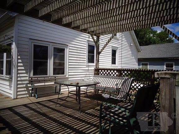 Spacious family home. 3 bedrooms up with bath, 1 bedroom down. Beautiful kitchen, first floor laundry. Bath on main floor, large deck, 3 season back porch. Updated electrical. 24 X 52 garage. New carpeting in living room and master bedroom. New roof and gutters in 2011. Concrete drive in 2011. Stove, refrigerator, washer & dryer stay. Come and see!