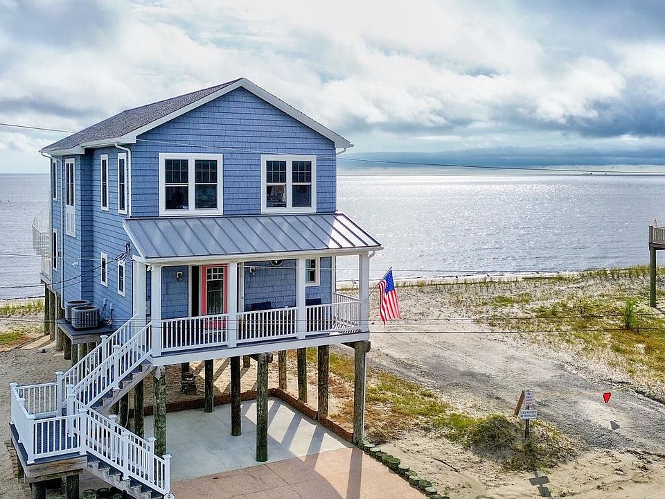 Welcome to your waterfront oasis in the serene community of Kitts Hummock! This exquisite custom-built home boasts 3 bedrooms, 2.5 bathrooms, and is perfectly situated on the picturesque Bay. From the moment you step inside the gracious foyer, you'll be captivated by the amazing water views and the thoughtful interior design features that make this property truly exceptional. Both the main and upper level are unified by beautiful bamboo flooring and a soothing coastal color palette. Multiple balconies provide stunning views of the bay and surrounding coastal habitats, providing the ideal spot for enjoying your morning coffee or watching the brilliant sunset. The gourmet kitchen is a chef's dream, featuring leather granite countertops, a 6-burner gas stove with double ovens, built-in microwave, high-end stainless-steel appliances, a range hood, custom wood cabinets, a deep walk-in pantry, and a classic subway tile backsplash. Whether you're preparing a gourmet meal or a quick snack, this kitchen has everything you need. Living space flows seamlessly into a dining area and living room, adorned by a cozy gas fireplace, perfect for relaxing on cooler evenings. The adjacent four-season room, accessed through beautiful atrium doors, offers a tranquil space to enjoy the changing seasons while staying comfortably indoors. A custom laundry center with storage and powder bath completes this main level. Take the turned staircase that leads to the upper level where you'll find the luxurious primary bedroom suite with a private balcony. This spacious retreat features a custom walk-in closet for your storage needs and an electric fireplace, adding warmth and ambiance to the room. The en-suite bathroom is a true masterpiece, with a free-standing tub adorned with a gorgeous overhead chandelier, a custom tiled frameless shower with a rain head, and an elegant Quartz topped vanity. Two additional bedrooms, both with water views, and a lovely hall bath highlighted by a timeless hex floor and stylish vanity with a vessel sink, adding a classic touch to the home's design. Additional upgrades include solid wood doors throughout the house, every closet has been upgraded with wood shelving and there is also a home security system in place. For your convenience, there is under house parking, a storage shed, and the house is securely elevated on pilings to protect against coastal elements. This ensures peace of mind and longevity for your coastal retreat. This waterfront home is simply PERFECT! With its luxurious features, thoughtful design, and breathtaking views, it offers the perfect blend of comfort, style, and natural beauty. Don't miss your chance to make this dream home a reality and enjoy the tranquil waterfront lifestyle it offers.
