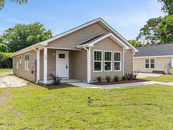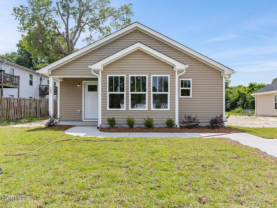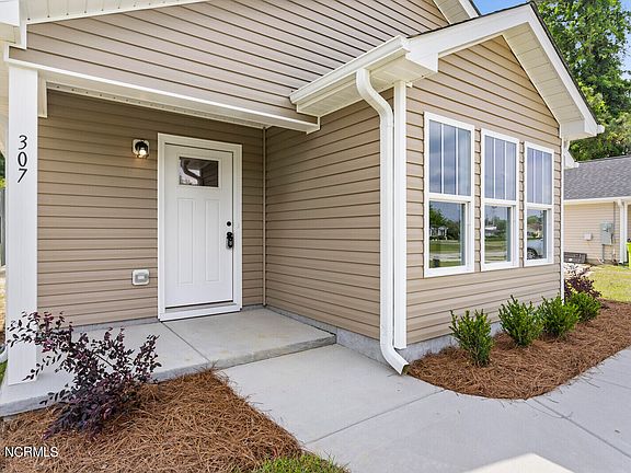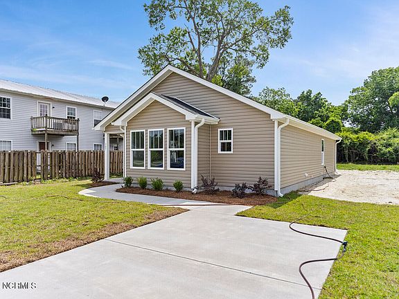 Newly completed home on quarter acre lot in the heart of Burgaw follows Charles David Construction's signature floorplan. Paved driveway with parking for two, sodded yard, covered entry contribute to curb appeal. Open living space at front of layout, three bedrooms and two full baths situated opposite. Common area features vaulted ceiling, LVP flooring, dining nook with ample natural light, kitchen with stainless appliances and island, and enclosed laundry. Primary bedroom suite has ensuite bath and oversized closet. Additional bedrooms share full hall bath. Property line at rear is partially treed, giving you a nice partial privacy buffer for pets, play, and entertaining. Home sites are close to Burgaw Middle School. Pender Memorial Park, Piggly Wiggly, and CFCC satellite campus. Easy access to I-40, HWY 421, or local route 53 for trips to Wilmington, Jacksonville, or Raleigh. Enjoy all manner of excursion across the coast! 28 miles to historic Wilmington riverfront, 31 miles to Wrightsville Beach or premier golf attractions in Hampstead, and 40 miles to Camp Lejeune main gate. Up to $5,000 in seller paid closing costs.