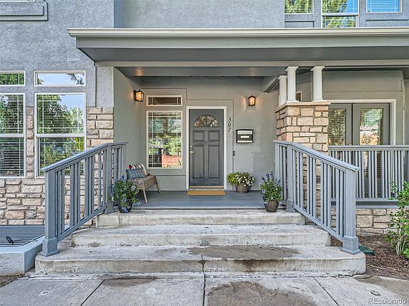 Tremendous opportunity to live in one of Denvers most sought-after neighborhoods. This contemporary bright and spacious home encompasses 4 beds/4 baths across 3 levels with an ideal floor plan. A broad front porch welcomes you into a bright entry area flanked by a formal dining room with wood floors, crown molding and french doors leading out to the front porch. To the left is a highly desired spacious main floor den/study or sitting area. The dramatic double height great room with gas fireplace has 2 walls of expansive windows allowing tremendous light to bathe the room throughout the day. The kitchen is complete with stainless appliances, pantry, bar counter/ sink area and ample counter space. The eat-in kitchen opens out to the private rear patio and garden through sliding doors making it an ideal place for summer BBQ's and gatherings. Laundry room/mudroom with sink and storage cabinets is located directly off the kitchen and accesses the oversized 2 car garage. A powder room completes this level. On the second floor the private and expansive sun-filled primary suite includes a sitting area to relax, Juliet balcony, 5 piece ensuite with double vanity and separate WC, dual closets. 2 additional bedrooms both with built-in shelving share a Jack and Jill bathroom with double vanity. A cozy living/den area accesses an upper balcony. This room can easily be converted to a bedroom if need be. On the basement level, there is a great hang out and entertainment area with an additional large bedroom, egress windows, and full bathroom. A very large storage area and mechanical room includes 2 hot water heaters to service the entire house. 2 additional parking spaces are located at the rear of the property allowing for ample parking. This home is conveniently and centrally located and is minutes from Cherry Creek dining and shopping, Cranmer and Crestmoor parks and numerous cultural centers.