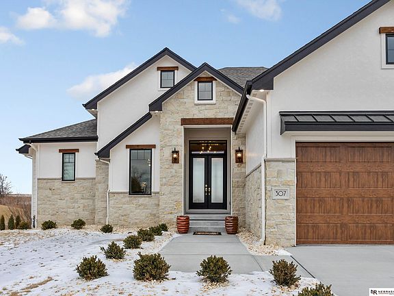 Contract Pending This stunning custom-built home is located on the 12th hole of the Iron Horse Golf Course, surrounded by nature, and designed with a pool in mind. Professionally designed home by local designer Megan Michael, who worked from plans that originated in Kansas City, to create a perfect atmosphere for relaxation, comfort and entertainment. Situated in a growing district with a small-town feel, it is close to Omaha, Lincoln, state parks, the Sac Museum, Safari Park and the interstate. A new primary school recently opened, and a junior high is set to open in December of 2023. This brand new home is the perfect opportunity to move in without having to build. It features ample storage throughout and is finished with quality high-end finishes. It offers eat in kitchen with a walk-in panty, 4 BR, 4BA, walk in closets, rec room, and office. Pre-qualification is required for purchase, so take the opportunity to make this beautiful, turn-key, home yours today! AMA