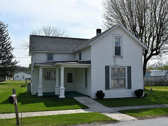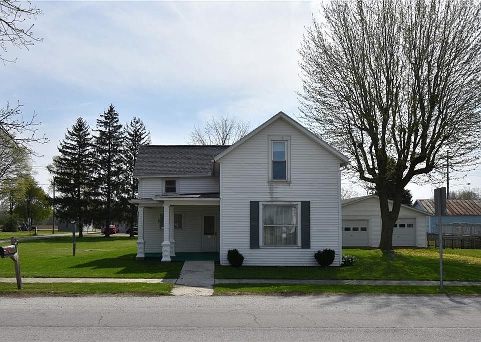 Located on a large 125x150 lot resides this 1.5 story home with 28x40 detached garage. Kitchen includes wood cabinets, gas stove, and refrigerator. Dining room features a built-in curio cabinet and adjoins the living room. Nice sized laundry/utility area features a utility sink. The sunroom to the back of the home opens up to a concrete patio area. The three bedrooms are located on the second floor, one bedroom is a loft bedroom and opens to the other two. Detached garage is great size and has electric, and concrete floor.