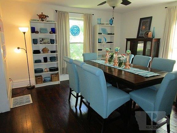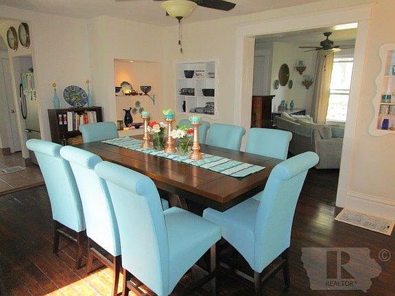 This light, bright 2-story home within walking distance to downtown & schools is one you need to see. Nice entry through the covered front entry features a view of the main level and a charming staircase. Living Room with hardwood floors and views. Fantastic Dining Room with hardwood floors & built-in shelving creating a relaxing atmosphere with your personal touches. Kitchen with plenty of light with tile floor, eat-at bar, & appliances. Main-level bedroom with hardwood floors & walk-in closet. Main-level 3/4 bath with tile floors. Upstairs with 3 more bedrooms with closets, laundry closet, & a must-see full bath with tiled floor & tiled tub surround. Recent upgrades include: new windows, new central A/C, & new water heater. Nice yard with alley access.