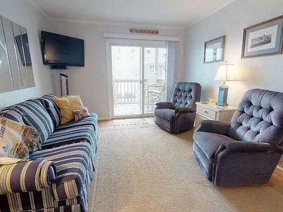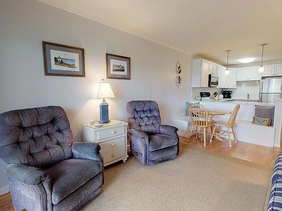 Come put your toes in the sand with this 2 bedroom 2 bath condo just steps from the beach. This impeccably maintained, stylish & fully furnished condo has a spacious & classic living/dining room combo with sliding glass door that opens to the relaxing balcony with a majestic view of the Atlantic Ocean that takes your breath away, an abundance of natural lighting, laminated wood, tile & carpet flooring, crown moulding, smooth flat ceilings, dining banquette seating with extra storage, stainless steel refrigerator, built-in microwave & dishwasher, tile back splash, pendent lighting, master bedroom with ceiling fan and sliding glass door that accesses the balcony, master bath has stand alone vanity and tile & textured pebbled glass step-in shower, guest bath comes with an arched basin & a large tiled & glass step-in shower, and laundry room with a stackable washer & dryer. This condo provides you close proximity to all the attractions and amenities of North Myrtle Beach and Myrtle Beach, with fine dining, wonderful world-class entertainment, fishing piers, and exciting shopping experiences on the Grand Strand. Just a short drive to medical centers, doctors' offices, pharmacies, banks, post offices, and grocery stores. Check out our state of the art 4-D Virtual Tour.