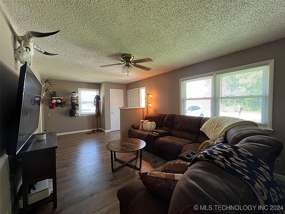 This immaculate home, freshly updated with a newer roof, floors, and interior and exterior paint, offers the perfect blend of comfort and convenience. Located on a desirable corner lot, the property boasts a fully fenced backyard with a sturdy chain link fence, providing privacy and security. A beautiful mature tree graces the backyard, offering excellent shade for outdoor relaxation. Inside, you'll find easy-to-maintain vinyl flooring throughout the home. The separate laundry closet adds a practical touch, keeping your living spaces tidy. Additional storage is provided by a handy shed. The home is ideally situated close to schools and is just within five miles of Keystone Lake and its boat ramp, making it an excellent choice for those who love outdoor activities.