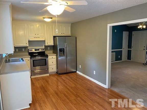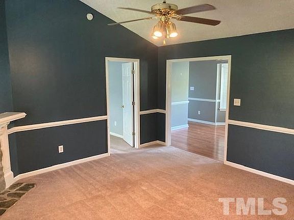 Cozy 3 bedroom ranch on a large lot located in a country subdivision. Family room has a cathedral ceiling and fireplace. Kitchen has Stainless appliances, Master bedroom has a cathedral ceiling, dual vanities and a walk in closet. Laundry room is complete with washer and dryer. Convenient to I95 and I40. Nice deck overlooking large fenced in yard. Front portion of shed is available in as in condition. Pets (1) are negotiable subject to owner approval with pet fee and additional security deposit. No aggressive breeds.