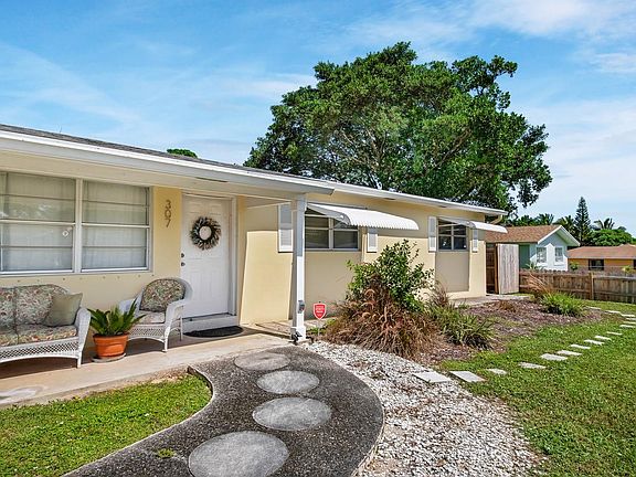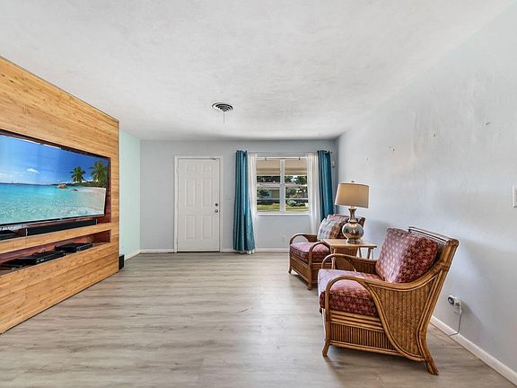 NO HOA IN CENTRALLY LOCATED NEIGHBORHOOD! Upon entering this 3 bedroom, 2 bath home, you are greeted by a spacious living room with an accent wall. Highly functional kitchen features stainless steel appliances, beverage fridge, plenty of cabinet / countertop space and a dining area. Large master suite with a door to the back yard and en-suite bath. The oversized Florida room can be used as a family room. Experience the Florida lifestyle on the patio that overlooks the large, private, fenced yard. New cork laminate flooring, large laundry room, tons of storage, updated electrical and an abundance of natural light complete this home. Located close to shopping, dining, entertainment, major highways, airports and the beach.