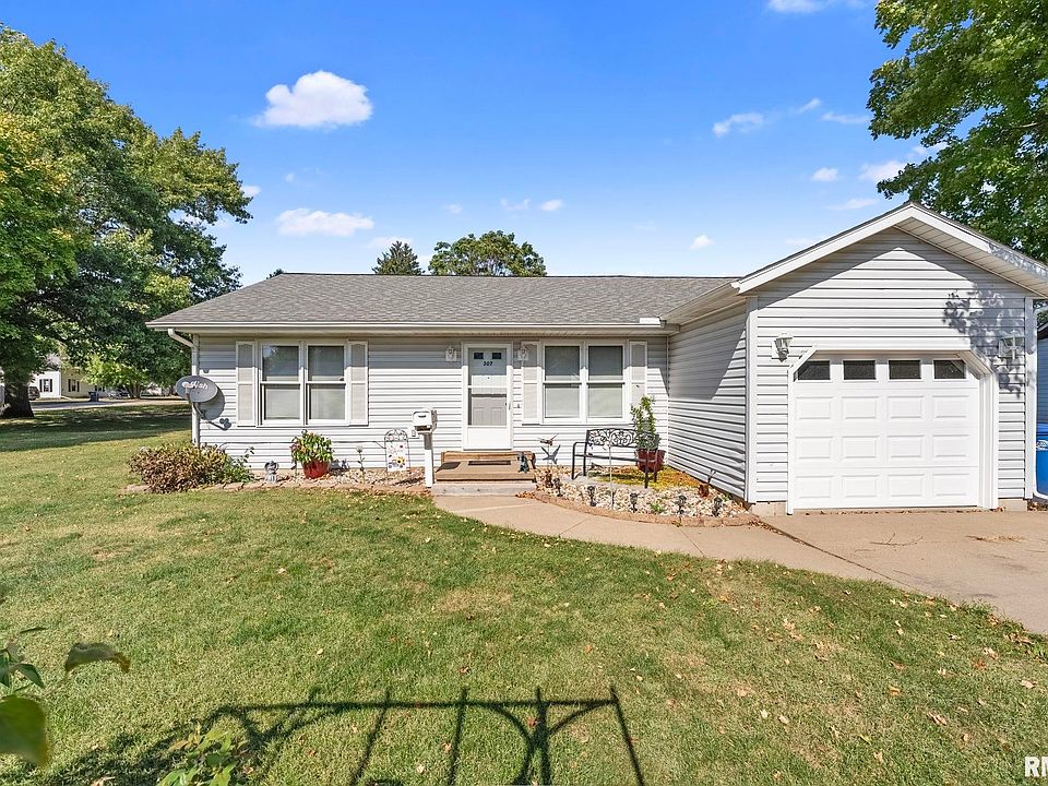 Welcome to your perfect downsized retreat! This charming 2-bedroom, 1.5-bath home sits on a spacious corner lot with a large yard, perfect for gardening or relaxing. Downsizing is made easy with an oversized 2-car garage (fits 3 cars) offering ample storage space and heated comfort. The in-floor heating system is already installed?just add the hydronic system when you're ready. Until then, enjoy warmth from the gas heater. For extra convenience, there's a 1-car attached garage, providing even more room. With no basement to worry about, you?ll avoid the risk of falls. The open-concept design and main-floor laundry add to the ease of living, while the screened-in porch lets you enjoy the outdoors without the bugs. A garden shed offers even more storage for tools or hobbies. Plus, the roof and gutter guards were updated in 2023, so you'll have peace of mind for years to come. This home is ready to welcome you into a simpler, more comfortable lifestyle