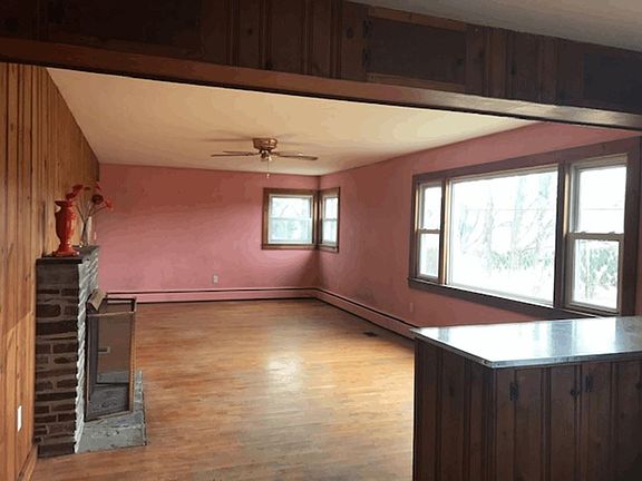 Solid, well build ranch w/ nice hardwood floors & wood burning fireplace in spacious living room w/ open floor plan connecting to kitchen. Endless possibilities to finish breezeway area and possibly add an additional bedroom + bath in enclosed area previously used as garage. Barn to store yard equipment... Great location, close to town, close to school but private setting and nice views.