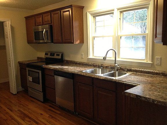 Very nice completely remodeled 2200 sq. ft. 4 BR home in great location. Beautiful hardwood floors throughout, gourmet kitchen with breakfast area, custom upscaled vanities in both bathrooms, large living room, spacious great room with fireplace, 4th bedroom could be large play room/bonus room or awesome master suite. Home has two enclosed porch areas. One off master bedroom would be nice sunporch for master suite. Second area off back bedroom was originally used for an office. Great space for kids den or playroom. Home is on OLD DUKE RATE. Roof is 2 years old. Home has upgraded appliances, new paint, hardwoods like new, and nice lighting fixtures. This home has a large yard and a nice creek that runs behind the home. Lot extends beyond the creek. Pleased note GIS plat. A beautiful home at a great price.