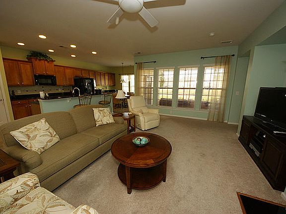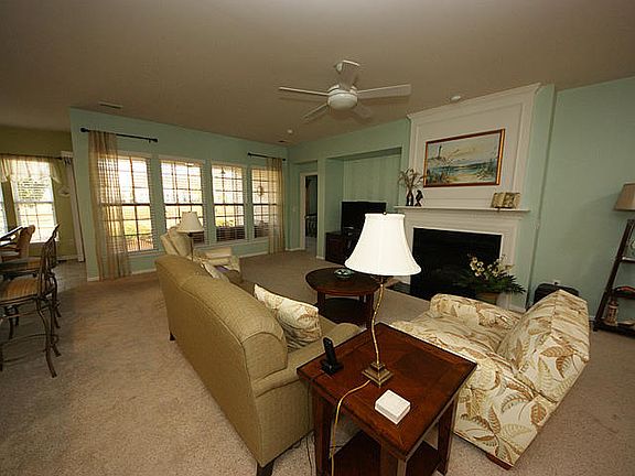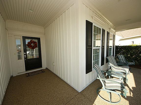 Popular Vernon Hill model located on cul-de-sac with one of the larger lots in the community. Home has been well kept and is ready for new owners. Featured is a full columned front porch with durable Everstone surface coating. As you enter the foyer you will be greeted by hardwood flooring. The front of the house consists of two spacious bedrooms and full bath. Front bath has granite counter top and tub/shower combination and ceramic tile floor. Bedrooms have wall to wall carpet. The dining area and great room have wall to wall carpet over hardwood. The carpet could easily be removed to use the hardwood floors. Office has hardwood floor. Kitchen, laundry room and baths have ceramic tile flooring. All ceiling fans and window blinds will convey. In the kitchen you will find