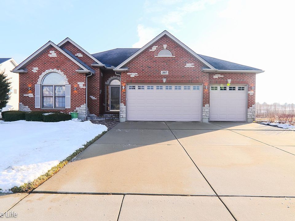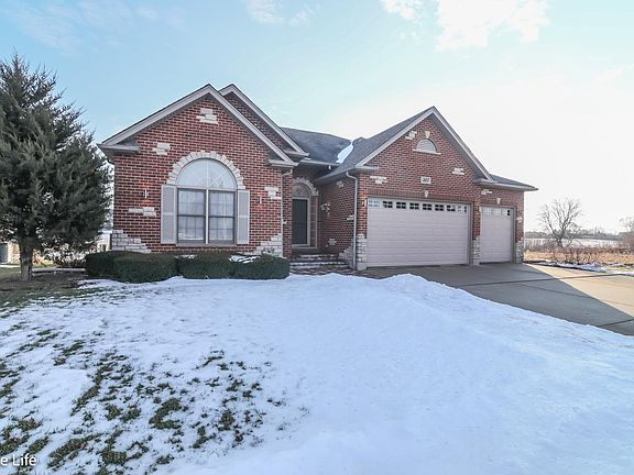 Come check out this beautiful open concept floor plan. Sun room, Gourmet kitchen, Split 3 bedroom 2 bath room with roughed in, in basement. Arched doorways, crown molding/ chair rail. Hardwood floors in Foyer, Kitchen & breakfast area and Sunroom, pantry, custom Cherry cabinets. Granite couter tops, laundry room cabinets/ w sink. Professional landscaping. Brick and flagstone front, brick paver front porch and sidewalk. Finished 3 car garage w/ 8 ft doors, hot & cold water in garage. Last house on dead end street.