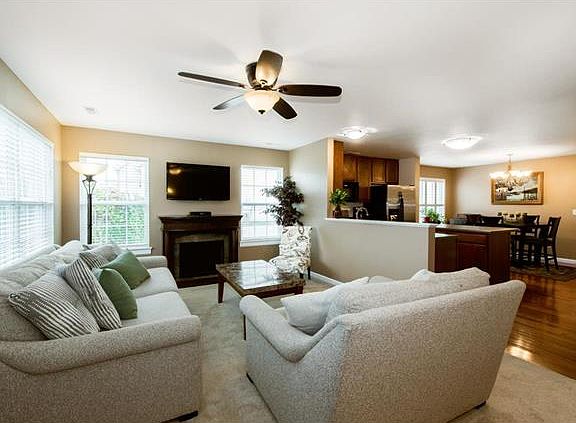 Immaculate and Impeccable! Stylish 3 bedroom, 2.5 bathroom townhome has been lovingly tended by only one owner. End unit means no neighbors on one side, only big windows! Main level features gleaming wood floors, 42" cabinets, stainless steel appliances, undercabinet lighting & handy powder room. New dishwasher (2016) & beautiful plantation shutters. Upstairs, the luxurious master suite with trey ceiling & huge walk-in closet is your private retreat. The spa-like master bath has a vaulted ceiling, dual sinks, a jetted tub & separate shower. Two additional bedrooms & a full bath down the hall along with a convenient 2nd floor laundry room! New programmable thermostat (2017) & carpeting (2016) add to your comfort! Rear entry 2-car garage! HOA covers yard, landscaping, snow removal & exterior maintenance. Neighborhood pool, pond, BB court & dog park. Easy access to I-364/64. Wentzville Liberty Schools. Near shopping, restaurants, movie theater & skate park! So much to offer! See it today!