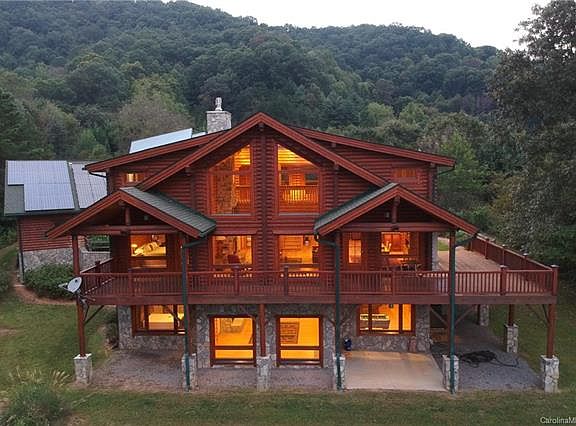 SENSATIONAL CUSTOM LUXURY HONKA LOG HOME MADE IN FINLAND FROM SUSTAINABLY HARVESTED ARCTIC PINE! THE BEST OF THE BEST IN LOG HOME MANUFACTURING. SPECTACULAR 180 DEGREE LONG RANGE VIEWS THAT WILL SIMPLY TAKE YOUR BREATH AWAY. KITCHEN IS A CHEF'S DELIGHT WITH COMMERCIAL GRADE RANGE, WHIRLPOOL FRENCH DOOR REFRIGERATOR, AND BOSCH DISHWASHER. CUSTOM CHERRY CABINETS AND QUARTZ COUNTERTOPS THROUGH OUT. VAULTED CEILINGS AND OPEN FEELING THROUGHOUT WITH WINDOWS ALLOWING THE AWESOME VIEWS TO HELP YOU RELAX AND ENJOY THIS MAGNIFICENT PIECE OF HEAVEN. FLOOR TO CEILING FIREPLACES IN GREAT ROOM AND FAMILY ROOM. RECREATIONAL ROOM BOASTS A LARGE POOL TABLE. OVERSIZED 2 CAR GARAGE WITH LARGE WORKSHOP AND BEAUTIFUL AREAS OF LANDSCAPING . LARGE AREA FOR GARDENING. 6KW GRID TIED SOLAR ENERGY PANELS TO SUPPLEMENT ELECTRICAL NEEDS. . LOCATED CLOSE TO WAYNESVILLE AND NEARBY DUKE REGIONAL HOSPITAL AND ALSO A RELATIVELY SHORT DRIVE TO ASHEVILLE. EASY YEAR ROUND ACCESS MINUTES TO SHOPPING. PERFECT!!