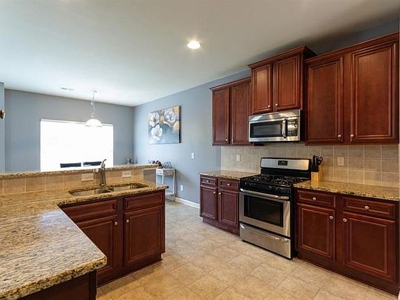 - Kitchen Features: Breakfast Bar, Cabinets Stain, Eat-in Kitchen, Pantry, View to Family Room, Stone Counters