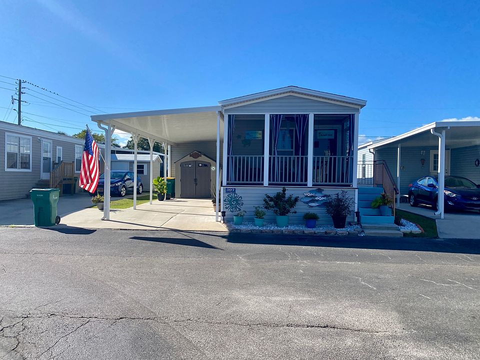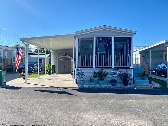 NEW LISTING IN MERRITT ISLAND VILLAGE 55+ ADULT PARK The photos don't convey the QUALITY upgrades that this owner has completed on this 2017 home (approx 1052 sq ft) ~ Interior freshly painted ~Top of the Line Appliances including washer/dryer ~4 New ceiling fans with overhead lighting ~Soft close kitchen cabinets and drawers ~QUARTZ Kitchen sink with gooseneck faucet with sprayer ~Upgraded outlets and lighting fixtures ~Front Bedroom with accent shiplap wall offers a New Murphy bed ~Custom cordless bamboo shades will remain, with curtains ~Newer 4x7 shed to remain Merritt Island Village is a 55+ adult community -The lot rent is currently $470 /month- including water (3kg), sewer, trash/recycle pickup, and basic lawn care. -Full background check is completed on all new owner's - $20.00 fee per person. -1 small animal under 25lb permitted with park approval. -RV/ Boat parking may be available, check with management. -No motorcycles permitted. -No rentals permitted. All listing information is deemed reliable but not guaranteed and should be independently verified through personal inspection by appropriate professionals. We do not and cannot guarantee or warrant the accuracy of this information or condition of this property. Measurements are approximate. The buyer assumes full responsibility for obtaining all current rates of lot rent, fees, and pass-on costs. Additionally, the buyer is responsible for obtaining all rules, regulations, pet policies, etc., associated with the community, park, or home from the community/park manager. We are not responsible for quoting of said fees or policies.