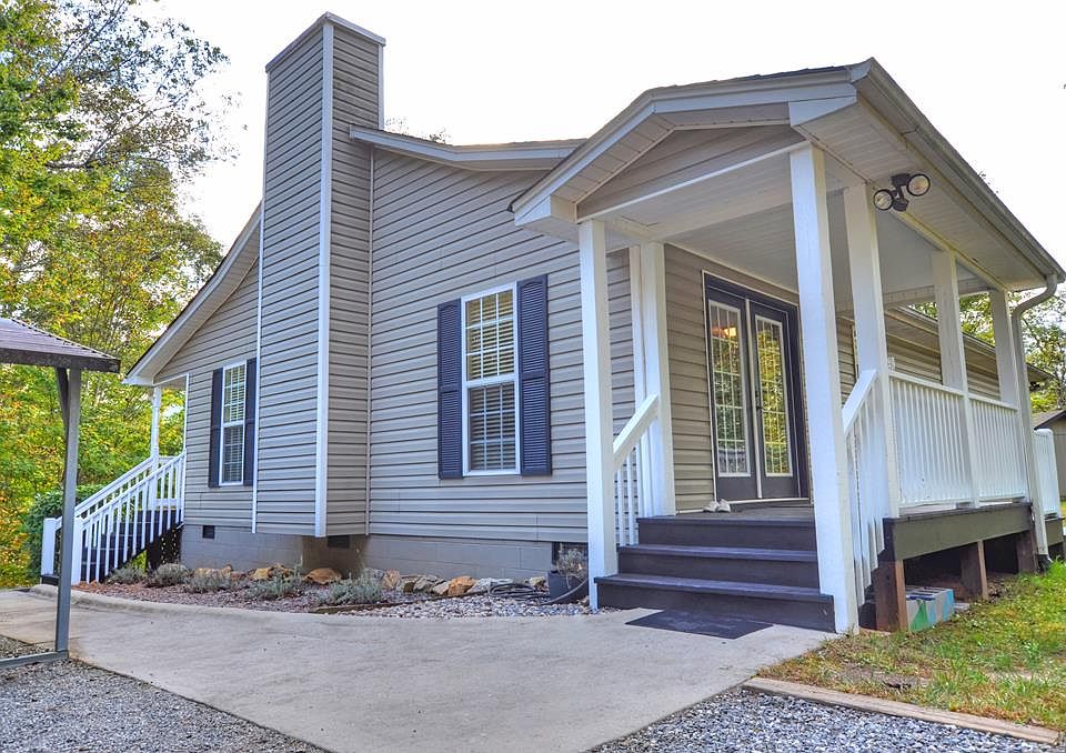 Modern mountain living! Looking for a private residence, with a convenient location to town? Look no further than this beautiful home, on a 1 acre lot, surrounded by trees. This property is ideal for privacy, and suitable for any vehicle, due to the well maintained paved driveway. All you'll hear is the birds, as you sit on your cozy covered front porch. If you are outside at just the right moment you can even hear the Great Smokey Mountain Steam Train off in the distance.This 3 bedroom, 2 bathroom home has a gorgeous open floor plan perfect for entertaining. The spacious kitchen opens up to a large dining room. A custom stone based, wood burning stove, is all that separates the open space to your large living room. The Master Bedroom has 2 spacious walk-in closets,and a freshly painted private bathroom. There is a large guest room and closet, as well as a third room perfect for an office or children's playroom. The hallway has a second bathroom, an organized storage closet space, and the laundry room, with lots of room for additional storage. Ready to make your move to the mountains? This listing is calling you home. Come see it today!