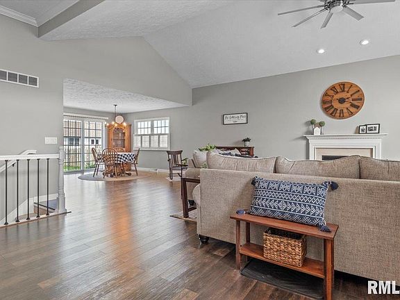 Walk in and instantly be amazed at Open Floor Plan w/vaulted ceiling and updates throughout, including flooring, light fixtures, ceiling fans and light switches. Island can lights are even alexa/nest enabled. Updated kitchen with quartz counter tops and black stainless steel appliances. 2 walk-in closets in Master Suite w/double vanity and 4ft shower. Wet bar in family rm w/full sink wired for surround sound and 4th bedroom w/full bath in finished basement . 2 gas fireplaces w/2 egress windows in basement. Newer water heater and sump pump. Home has wired ethernet. Awesome fenced back yard, outbuilding and oversized patio for entertaining. What a pleasure to show this home!