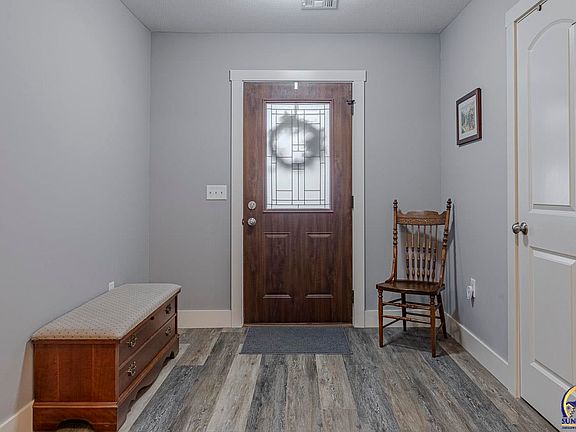 This well-maintained, one-owner zero entry home is just a short walk from St. George Elementary School. It boasts an open floorplan, with a kitchen featuring granite countertops, an eating bar, and a pantry. The master bedroom offers coffered ceilings, a private bath, a walk-in tiled shower, and a closet full of built-in storage. Additional features include a tankless water heater. Outside, you can unwind on the covered patio, surrounded by the privacy of a spacious fenced backyard, perfect for outdoor activities. The 3-car garage provides plenty of space, along with a built-in safe room. This property is truly a must-see!