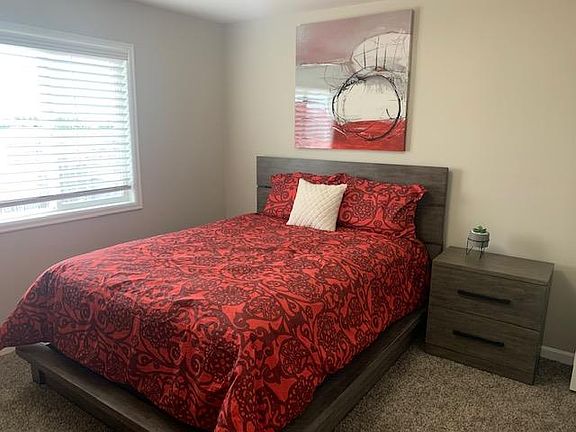 Completely furnished with trendy, brand new furniture. This townhome has just been completely painted inside and has brand new carpet, too. Two full baths and two car garage add to it's convenience. Kitchen completely furnished with dishes, etc. and all new furniture and bedding make this furnished rental a breeze to rent. ONe king size bed in master, and one queen size bed in extra room. Landlord pays utilities up to a standard amount. $2700/month *60 inch TV in living room *Brand new washer & dryer in unit as well! Unfinished basement for storage FULLY FURNISHED CORPORATE rental