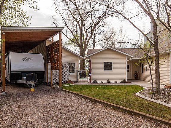 Charming updated home tucked in a quiet cul de sac with park like setting & guest apartment in quaint Manhattan. Single level 3 Bed /2 Bath home /remodeled kitchen includes granite counter tops, cork floor, stainless steel appliances, under counter lights & tile back splash. Track lighting thru-out home. Gas fireplace in great room. Master Bedroom has walk in closet, en suite and private door to backyard. Walk right out to your hot tub or leave the door open & fall asleep to peaceful water feature. Mature trees canopy property so no need for AC. Smart Home technology controls both the thermostat and an alarm system right from your phone. Endless possibilities with guest apartment. 384 sq ft separate building can be an ADU, extra bedroom, garage, office or even VRBO. Apartment boasts shower, toilet, sink, place for refrigerator and plenty of room for bedroom and living area. Large Toys welcome-RV Covered parking with water, power & sewer dump. It's even pigeon proof! No HOA.