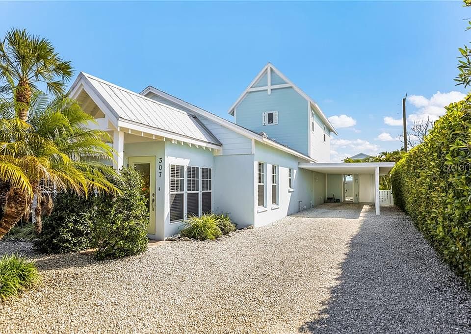 As soon as you walk into this well taken care of home, you feel a sense of relaxation and calmness. This 3 bedroom, 2 and a half bathroom beach cottage has been held by the same owner since 1986 and was totally renovated in 2008! As you enter the sunroom, there is so much natural light, perfect for morning coffee or to dive into a great book. It opens up to the main living space, open floor plan with living, kitchen and dining. As you continue there is a separate family room for entertaining and has a sleeper sofa for an extra sleeping area. 2 bedrooms, 1 with a half bath, Full bath off living space and laundry room on the first floor. Head up the stairs and you have your private Master bedroom with French doors that open up to your own screened in lanai with Gulf breezes. The master bathroom has a huge walk in shower and separate jacuzzi tub. His and her closets with plenty of storage space. Storage room off the carport for bikes and beach toys. Backyard is surrounded by lush landscaping and a beautiful heated pool. This is where you will spend most of your time! Very short stroll to the Gulf of Mexico and the Bay beach. 1 block away from Pine Avenue to enjoy restaurants and shopping. You have the best of both worlds with this home, offered turnkey furnished with the exception of a few items, schedule your private showing today!