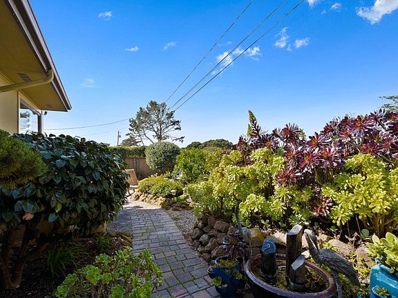 Escape to a serene coastal retreat in beautiful Pacific Grove! This charming 3-bedroom, 2.5-bathroom home is nestled on a corner lot, boasting two driveway entrances. Enjoy breathtaking ocean views from multiple vantage points. Succulent gardens and fruit/citrus trees surround the property, providing privacy and tranquility. Sun-drenched interiors feature expansive windows, filling the home with natural light. The spacious living room offers a cozy fireplace and sweeping ocean views. Indulge your culinary aspirations in the kitchen, equipped with brand new leathered granite countertops. The split-bedroom floor plan ensures privacy, with the guest wing featuring a convenient jack-and-jill bathroom, ideal for families, guests, and home office. Ascend the stone stairway to the upper driveway and garage. The front yard's serene garden overlooks the Pacific Ocean, offering a perfect spot for relaxation and entertaining.