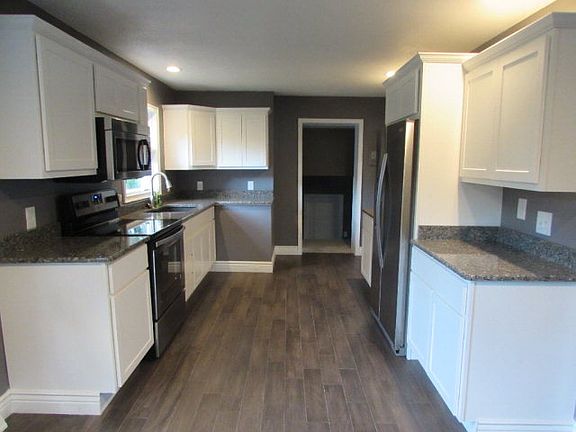 BISMARCK SCHOOL-4 BDRM, 2 FULL BATHS, NEW FLOORING, PAINT, KITCHEN CABINETS-GRANITE COUNTER, C/A, HOT WATER HEATER, GUTTERS, BATHROOM COMPLETELY, NEW APPLIANCES, TILE, DOORS, LIGHTING, JET AERATION, WATER SOFTNER, PLUMBING, GARAGE ROOF, SOME SIDING - ALMOST EVERYTHING - TAKE A LOOK - WITH A 2 CAR GARAGE ON 6.5 ACRES UPSTAIRS THERE IS HARDWOOD UNDER THE CARPET