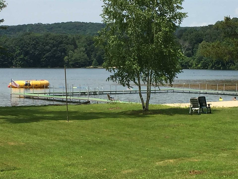 Seasonal SUMMER LAKE COMMUNITY. GREAT FOR WEEKEND GETAWAYS OR SNOWBIRDS WHO NEED A PLACE TO STAY WHILE VISITING. LONG SEASON 4/15-10/15, PRIVATE BEACH, SWIMMING, FISHING, BOATING, row, kayak, canoe, paddleboard... Get ready for next summer. 60 MILES OUT OF THE CITY. Half of a duplex. Large 2 BR, 2 bath, LR, EI Kitchen. Spacious unit with a 260 sq. ft. fully enclosed porch which extends the living area and can be additional bedrooms. LAKE/BEACH. All rooms also have electric heat with separate thermostats. HOA includes TAXES, Water & Sewer, Grounds, private beach, fishing, basketball, volleyball, playground & Pavilion. One Hour to NYC, Comes complete with all furniture.
