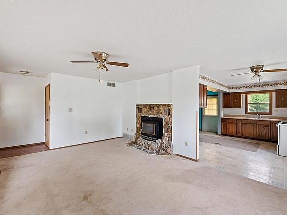 - FEATURES: Ceiling Fan, Fireplace, Garage Door Opener