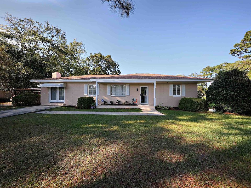 Stunning Mid-Century home on corner lot. Located across from the Thomas University ballfields at Balfour Park, this beautiful 1950's ranch has been well-loved and meticulously maintained. Only minutes from the historic Downtown Thomasville shopping district, where nationally and regionally known shops and restaurants attract visitors from across America and around the world. With interiors featuring Bellawood floors and tongue and groove pine ceilings, there isn't another home so elegantly appointed in this range, New paint inside and out as well as a new roof, HVAC and attractive landscaping. Spacious kitchen with a gas range. Gorgeous dining room, huge kitchen. Bright and airy master bedroom with large windows adjoins a large bonus space currently used as a home office but could function as a nursery, gym or hobby room. French doors open into the shaded backyard. A giant family room, anchored by an impressive wood burning fireplace, is truly the heart of the home, and certain to be the site of many happy gatherings. Outside, a 9x15 concrete storage building with attached carport will protect your vehicle and your toys. You won't find a better value in a home.