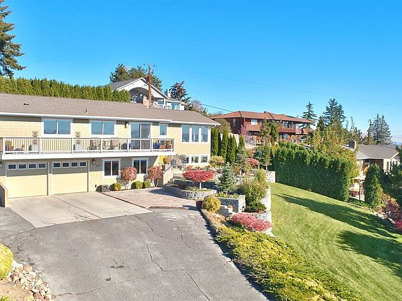 Truly better than new. Solid construction updated from top to bottom with gorgeous panoramic valley and Mt. Adams views. This beautiful home features substantial upgrades including updated major systems (roof, windows, HVAC, etc.), a fully renovated custom kitchen and renovated bathrooms. The main level features a beautiful entertainers kitchen with access to the front view deck, a large light filled living room with access to the private back yard. Primary bedroom complete with en suite bath and private patio, two additional bedrooms and a full bathroom. The lower level is also light filled, and features an additional living space, office area, oversized bedroom, full bathroom, and access to the garage with additional storage/workroom.