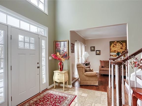 *Newer roof, newer HVAC systems* Stunning home blends timeless elegance with modern comfort on an oversized home site with mature trees. With 9-foot ceilings, the spacious interior features a traditional layout ideal for relaxation and entertainment. Home office with French doors and hardwood provides a quiet workspace. Hardwood is highlighted in the living room, elegant dining room with a tray ceiling, chair rail and in the spacious family room with a cozy fireplace. The renovated kitchen dazzles with heated travertine floors, granite, soft-close cabinetry, and an island with seating. Remodeled powder room and a large laundry/family entrance round off this level. Upstairs, expansive primary offers a renovated bathroom with a glass-enclosed shower and heated floors. Three guest bedrooms and an updated hall bath complete. The lower level has a wet bar, versatile room for a fifth bedroom, game room, full bath and ample storage. Outside, enjoy a private paver patio and lush landscaping.
