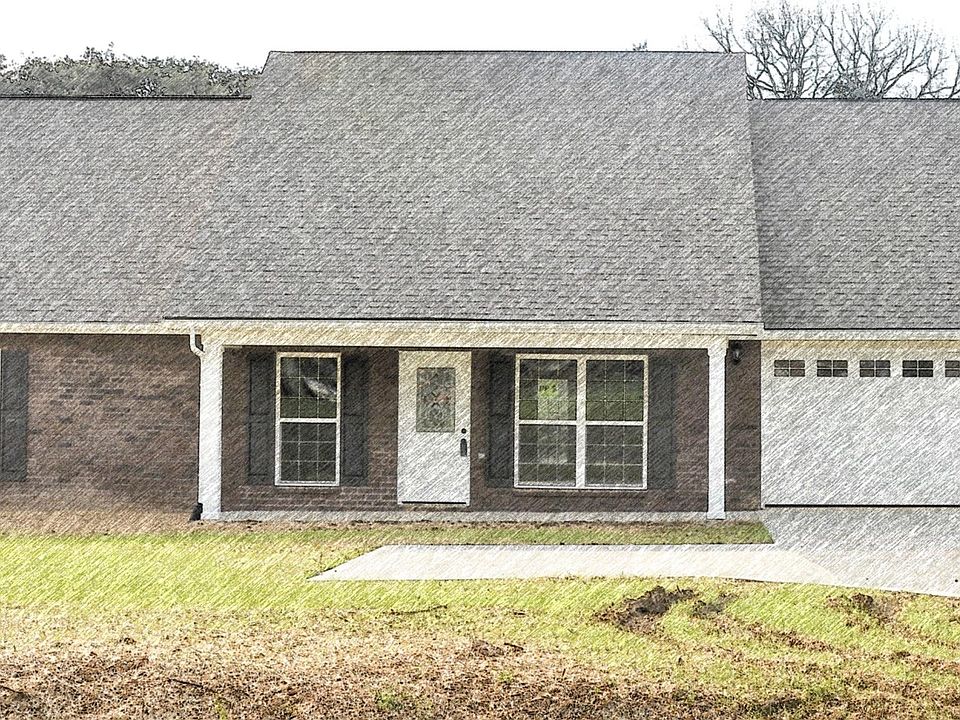 Under construction in the county yet close in, this great one level home has 3 bedrooms, office, eat-in kitchen, large living area with covered back porch. The lot is .82 acres and level.