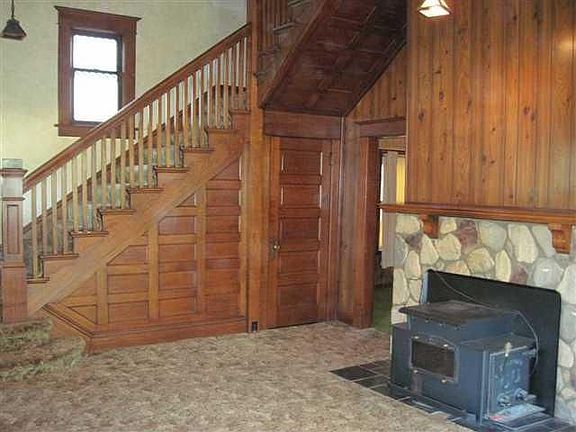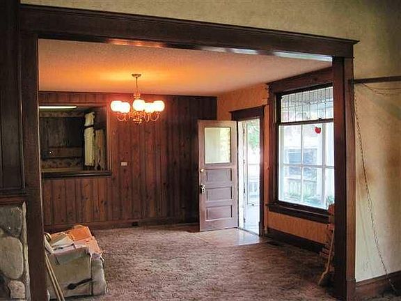 Historic 3-5 BR, 2 BA 2 STY on huge corner lot loaded with potential. High beamed ceiling in lg LR w/amazing woodwk & lead glass windows. Formal DR w/drto covered porch. Den/BR & small BA on main. 3 BR, 1 BA up. MBR has private porch. Spiral stairs to fin attic. Lg front porch w/newer flr. Det old gar w/wkshop loft & lean-to parking. Close to downtown, schools & park.