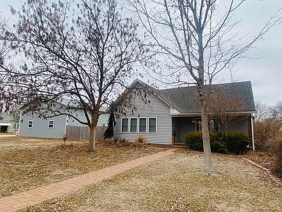 Welcome Home!  This adorable home sits on a 1/3 of an acre and as you enter through the front door you will pass by a covered front porch, into a large open foyer. The home features one bedroom with access to a cobblestone patio, that is built to be able to host a hot tub, 1 bathroom with a walk in shower, a very large living room with a custom built-in entertainment center and new carpet, a large open kitchen perfect for social gatherings, including an eating bar connected to the dining area. Just off of that is a bonus family room perfect for a cozy night in!  Heading Outside this property opens up a ton of possibilities! There is a huge metal shop built in 2015 that is fully concreted across 1,560 sq ft, with shelving, 2 regular garage doors with openers, 1 large 10 ft garage door and a sideloading door. In the Summer cool off in the 22 ft wide, 4ft deep above ground pool with a 2 yr old liner and sand filter housed in it's own pool shed with toilet & plumbing!  All pool equipment stays! There is an additional 28X22 gutted shop with great woodwork, electrical, very nice windows, and just an overall multi creative space!  The property also has an amazing 8ft private fence and a BRAND NEW ROOF from 2022 with a 20 year warranty that transfers to the next owner! Make sure you scroll through all the pictures to see some from this past spring with all the beautiful greenery! Don't miss your chance on this gem!