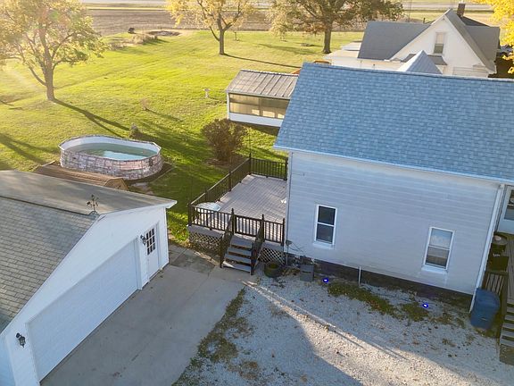 This adorable home sits on a dead-end street in Odell on a large 130 x 125 lot, which includes lots 5, 6, and E30' of 7. This home features 2 bedrooms, with the potential for a 3rd bedroom upstairs. 1 full bath. Up-to-date Kitchen with ample oak cabinets and stainless steel appliances, and an updated high-end modern microwave that all stay. Hardwood floors in the Dining Room and Kitchen. Laundry room off the kitchen. Washer and dryer also stay. Large Living Room with carpet. The downstairs bedroom also has carpet. Walk upstairs to a large Master Suite to take and make it your own. 10 x 10 Bedroom w/ 9 x 15 area off the master. Also upstairs is a 13 x 11 unfinished storage room. Downstairs has so many nice windows to let the sunshine in. Go outside to the 24 x 11 deck overlooking the beautiful backyard with an above-ground pool and a storage shed. Or relax on the front porch and enjoy the view. Another highlight is the 24 x 24 detached garage turn-key man cave. This garage was a gathering place for treasured folks of Odell. It is set up for entertaining.