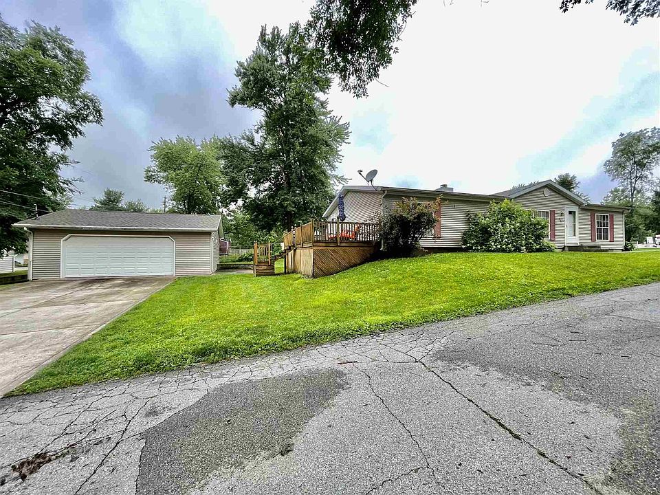 OPEN HOUSE 7/11/21! Very nice 3 bedroom, 2 bath home with an oversized 2 car detached garage. Sit in your living room and relax from the beauty of your floor to ceiling fireplace, or enjoy all of the counterspace and cabinetry in your kitchen. This home has been very well taken care, including updates of newer appliances; furnace and air conditioning serviced yearly; concrete driveway, walkway and patio; side large deck; 2013 new furnace; 2017 new flooring; 2018 new back doors; 2019 new roof on house and garage; June '21 chimney rebuilt; newer garage siding; newer master shower and flooring in master bath; newer hall bath skylight. All eastside windows, upper glass, are being replaced, tentatively scheduled for end of July. All bedrooms have, walk in closets. Seller is not able to look at any offers until 7/12, at 7 pm.