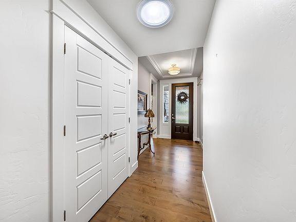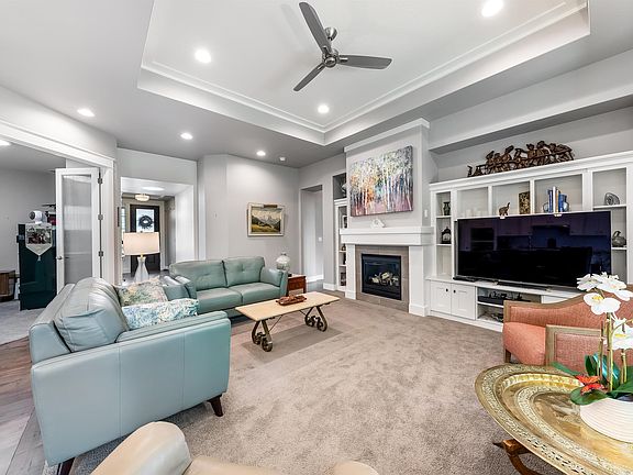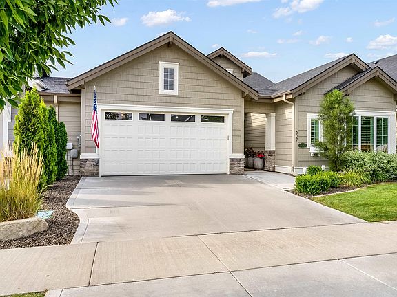 Nestled in a highly sought-after 55+ community in Meridian, this impeccable home offers a blend of absolute comfort and elegance! The thoughtfully designed interior features coffered ceilings, built-ins surrounding a cozy gas fireplace, and a well-appointed kitchen with double ovens, a gas cooktop, and a large granite island. The master suite enhances the luxurious feel with its dual vanity, walk-in tile shower, and spacious walk-in closet. Additional comforts include a laundry room complete with a folding area, brand new washer and dryer, and custom cabinetry in the garage. Recent upgrades such as a sliding glass door leading to the backyard and a water softener system add to the home's appeal. Tiled showers and an array of modern conveniences ensure this home meets every need with style. The home boasts exceptional curb appeal with a variety of trees and flowers creating a backyard oasis. This property offers both aesthetic appeal and practical enhancements in one of Meridian’s finest communities!