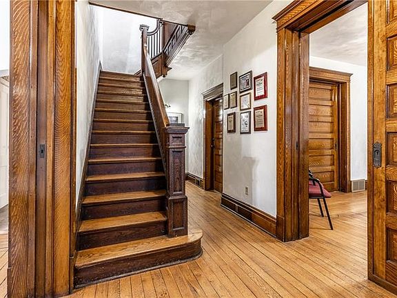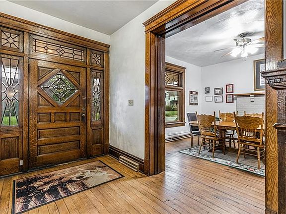 Many wonder what it would be like to live in one of the grand, estate-like homes in Zelienople - will it have custom detailed and meticulously crafted trim work? A one-of-a-kind designed slate roof? The answer is yes. Walk across the large, welcoming front porch & be stunned by the gorgeous solid wood door & sidelites. Enter & you will be blown away by the massive pocket doors, and a layout that offers a timeless feel & nostalgia of older times of entertaining. Welcome guests into your parlour, pour a drink by the floor to ceiling brick fireplace & enjoy the view of the bustling town through your oversized, sun-filled windows w/ clear stained glass accents and transom detail. This home includes 5 bedrooms, 2 full, updated bathrooms & a finished third floor game room or master suite option. Sneak through the back staircase down to what could transform into a well-appointed kitchen. Situated on a .26 acre lot w/ a detached 3 stall garage, you will fall in love with this dream of a home!