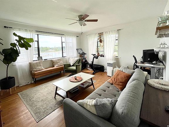 Second floor one bedroom apartment with western and eastern water views of Huntington Harbor. Shared entry in multi family building. 10 steps up to front door. Eat in kitchen with gas cooking and full bath. Convenient to restaurants, shopping, beaches, parks and more! Less than 2 miles to Huntington Village. Water/Heat Included. No laundry/dishwasher. No pets. Private parking