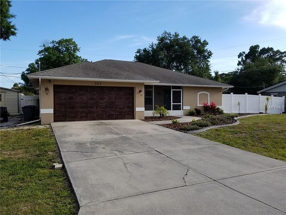 This well cared for South Venice home was built in 2001 and is in "ready to move in" condition. The open floor plan with vaulted ceilings makes the home feel spacious. The house has been recently painted inside & out, has tile floors throughout, the water heater & air conditioner with UV light were new in 2016 and the water softener was new in 2017. Plantation shutters, newer appliances, concrete landscape curbing, 6' privacy fencing, large storage shed, paver deck in the rear and a 100'x100' lot are just some of the upgrades you'll enjoy at this home. Located in a X flood zone (so no flood insurance is required) and conveniently close to South Venice's private beach with ferry & Shamrock Park with tennis & nature trails along the intercoastal waterway.