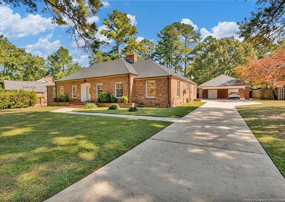 Stately custom brick ranch home in prestigious Vanstory Hills. 4BR/2.5/BA. Walk in to a foyer, living room and dining room with beautiful hardwood floors and lots of natural light. Wainscoting in foyer and dining room. Completely renovated kitchen with custom cabinets, oversized island, granite countertops, SS appliances and built in wine cooler. Cozy den with fireplace and built in sound system. Gorgeous sunroom with new lvp flooring and a wall of windows overlooking the large back yard. Double carport with extra storage. *Virtual Staging Photos Attached As Well*