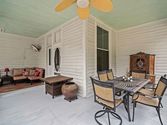 Built in 1889 and listed on the National Register of Historic Places, this beautifully updated four-bedroom, three-bathroom home offers a rare opportunity to own a piece of Southern history while enjoying all the comforts of modern living. With 3,214 heated square feet and a total of 4,466 square feet of indoor and outdoor living space, this grand residence is one of Marion’s true architectural treasures. Inside, timeless character meets contemporary updates. The kitchen has been thoughtfully renovated with granite countertops, a tile backsplash, stainless steel appliances, and LED accent lighting. Throughout the home, you’ll find rich wood and tile flooring, soaring 10-foot wood plank ceilings, and four fireplaces—including one that features an exquisite oak mantel with a built-in beveled mirror. The custom primary suite is a standout, offering a skylight and a large walk-in closet with built-ins, all wrapped in elegant finishes including heavy crown molding, wainscoting, and detailed built-in cabinetry. Modern comforts include vinyl replacement windows, architectural wood trim, an architectural shingle hip roof, a brick crawl space foundation, a tankless water heater with a pressure pump, and two HVAC units for year-round climate control. One of the most inviting features of the home is the pair of low-country style wrap-around porches, totaling 1,252 square feet—ideal for entertaining, relaxing, or simply enjoying the peaceful setting. Situated on over an acre of beautifully landscaped grounds (across two parcels) and offering more than 500 feet of combined road frontage, the property includes a detached double garage, two circular concrete driveways, a brick paver patio, and a decorative water fountain, all adding to the home's stately curb appeal. Located just two blocks from the Marion County Museum, Amazing Grace Park, and the vibrant downtown area filled with shops and restaurants, this historically significant home was reportedly the first in the city to feature electric lights and a bathtub. Lovingly maintained and cherished, it’s now ready for new owners to appreciate its blend of historic beauty and modern amenities. Don’t miss your chance to experience the charm, space, and timeless elegance this Southern classic has to offer. Schedule your private tour today. The listing agent is related to the sellers. Home is being sold AS-IS, all inspections are welcome!!