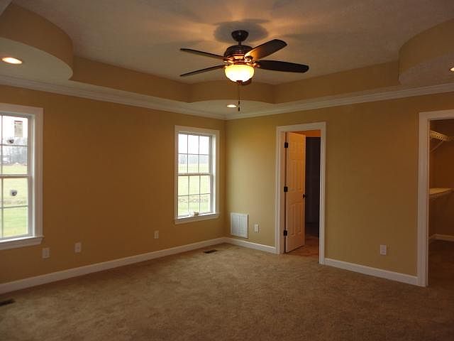 2200 Sq Ft. Granite kitchen counters .Hardwood flooring in living room. Carpet in bedrooms. Crown molding in living room. Trey ceiling in master bedroom and tile shower in master bath with double vanities.Tile in all wet areas. all nestled on 7.18 Acres!