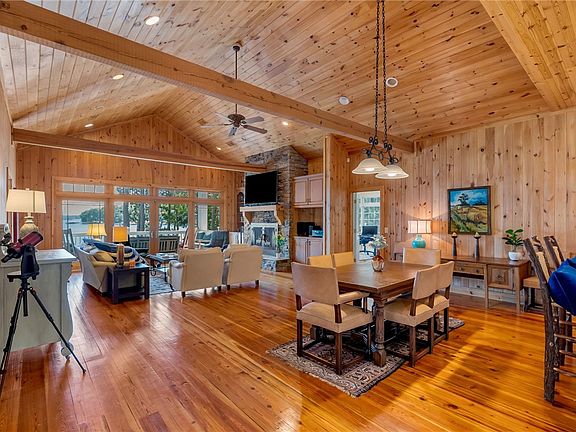 Beautifully maintained groundsCovered dockLarge recreation roomLandscaped stone pathwaysThoughtful architectural detailsCozy sitting areaOpen floor plan